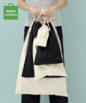 Stuff bag. Double drawcord closure. Natural pull ties. Certified 150gsm organic cotton.
